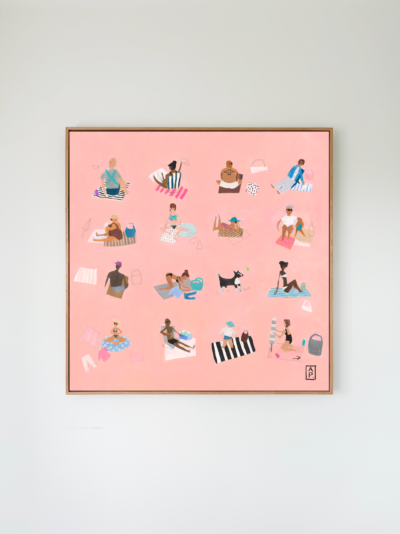 16 people is a grid-format collection of all the types of beach people I see with my eyes and in my mind, laid out in a neat corridor arrangement, a layout which you would never actually see on a beach with a colour of sand you would never actually see either. Suitable for a game of 'Where's Bernie'.