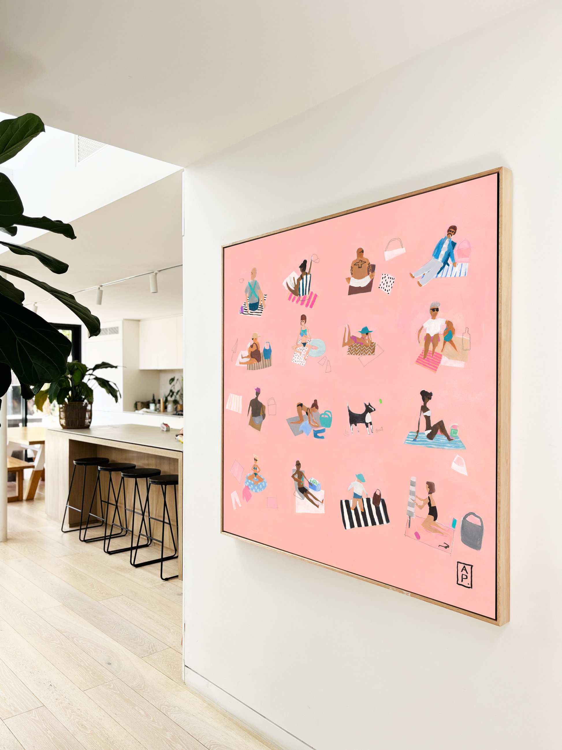 ORIGINAL ARTWORKS Painted with high quality UV resistant acrylic paint & oil stick on 350gsm poly-cotton canvas. Framed in Flooded Gum.